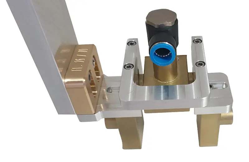 Der Grundhalter bleibt dauerhaft auf Ihrer Härteanlage installiert. Beim Wechsel tauschen Sie lediglich das Kassettensystem, das exakt auf den zu härtenden Rohling (Flachmaterial) sowie den zugehörigen Induktor abgestimmt ist.